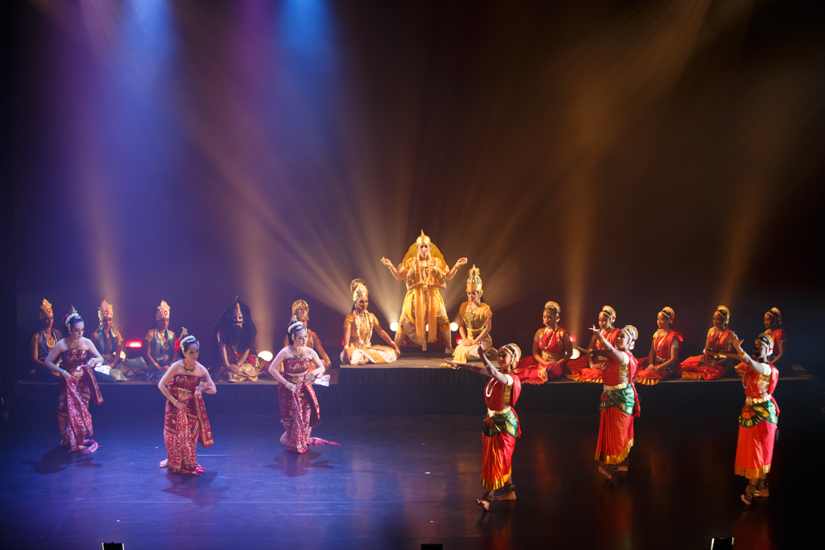 The carnatic music spans from the meditative to the rhythmic, while the various metals from the gamelan instruments enhance the rhythms and provide a wholesome resonance. A sense of grandeur envelops the whole theatre at the start and end of the show, when both musical forms come together, as we see the gods take the central dais, and are surrounded by the various dancers to form an impressive iconography.
