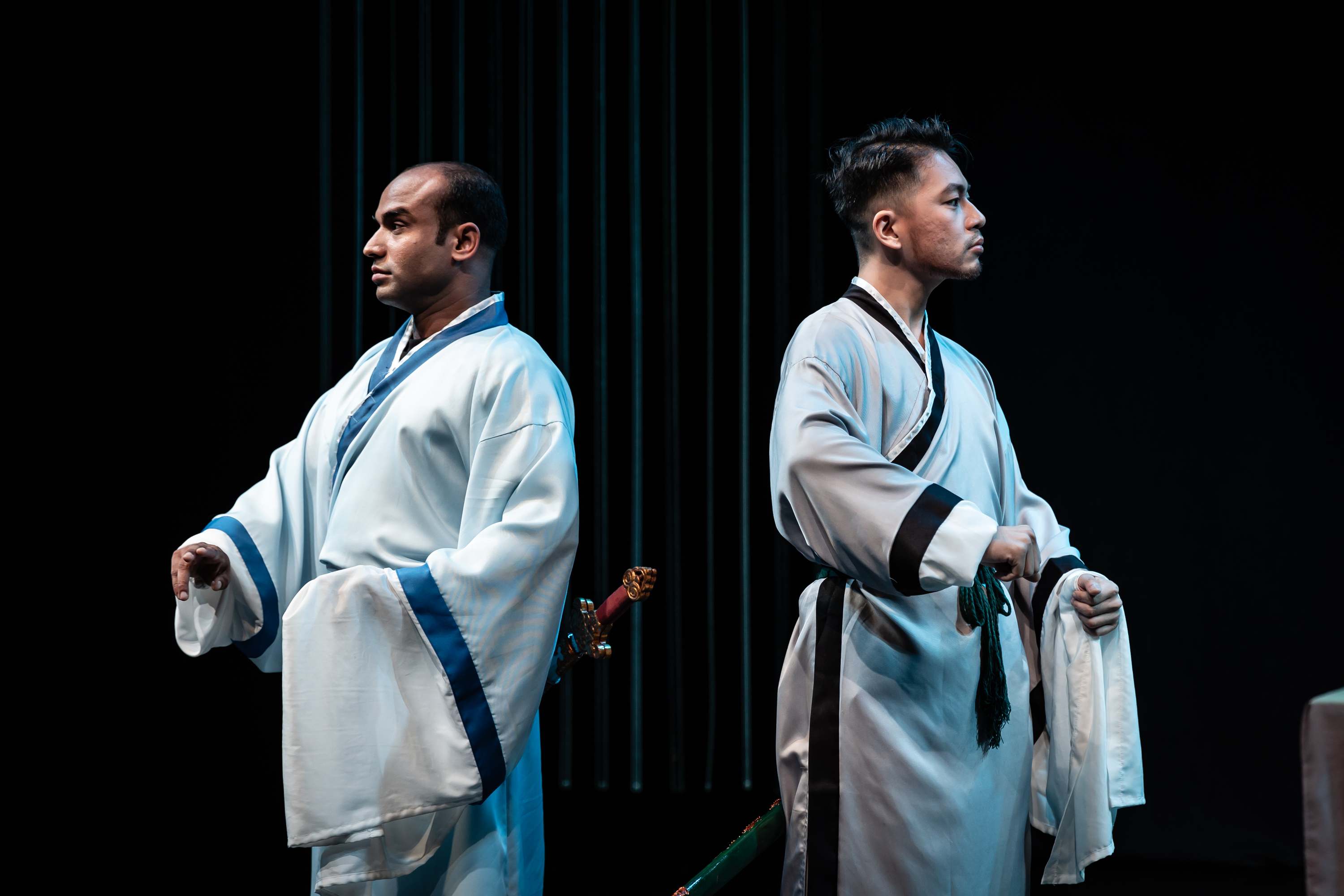 Oliver S.K. Wu (Lysander) and Kaleem Zafar (Demetrius) occasionally struggle with the mountain of mawkish text as they try to woo the ladies, but their physical sequences, which are borrowed from Beijing opera, are entertaining to watch when both characters are at odds with each other.